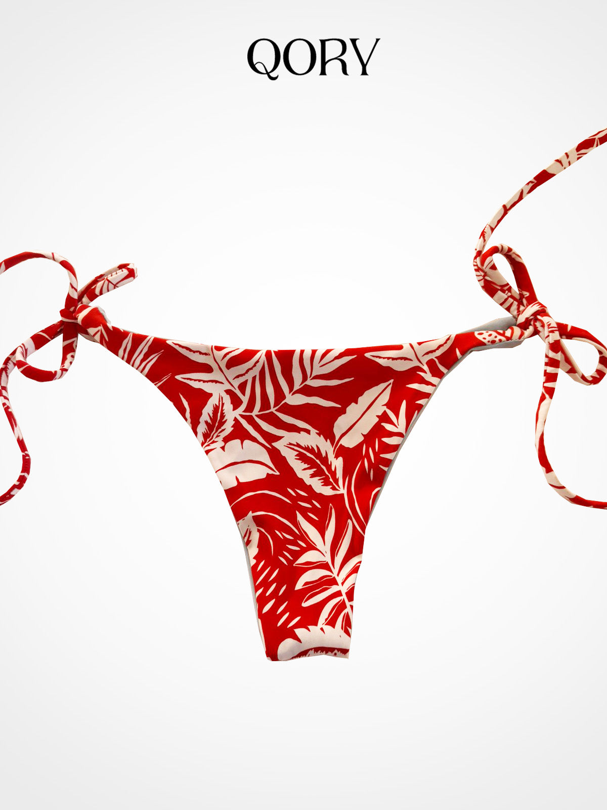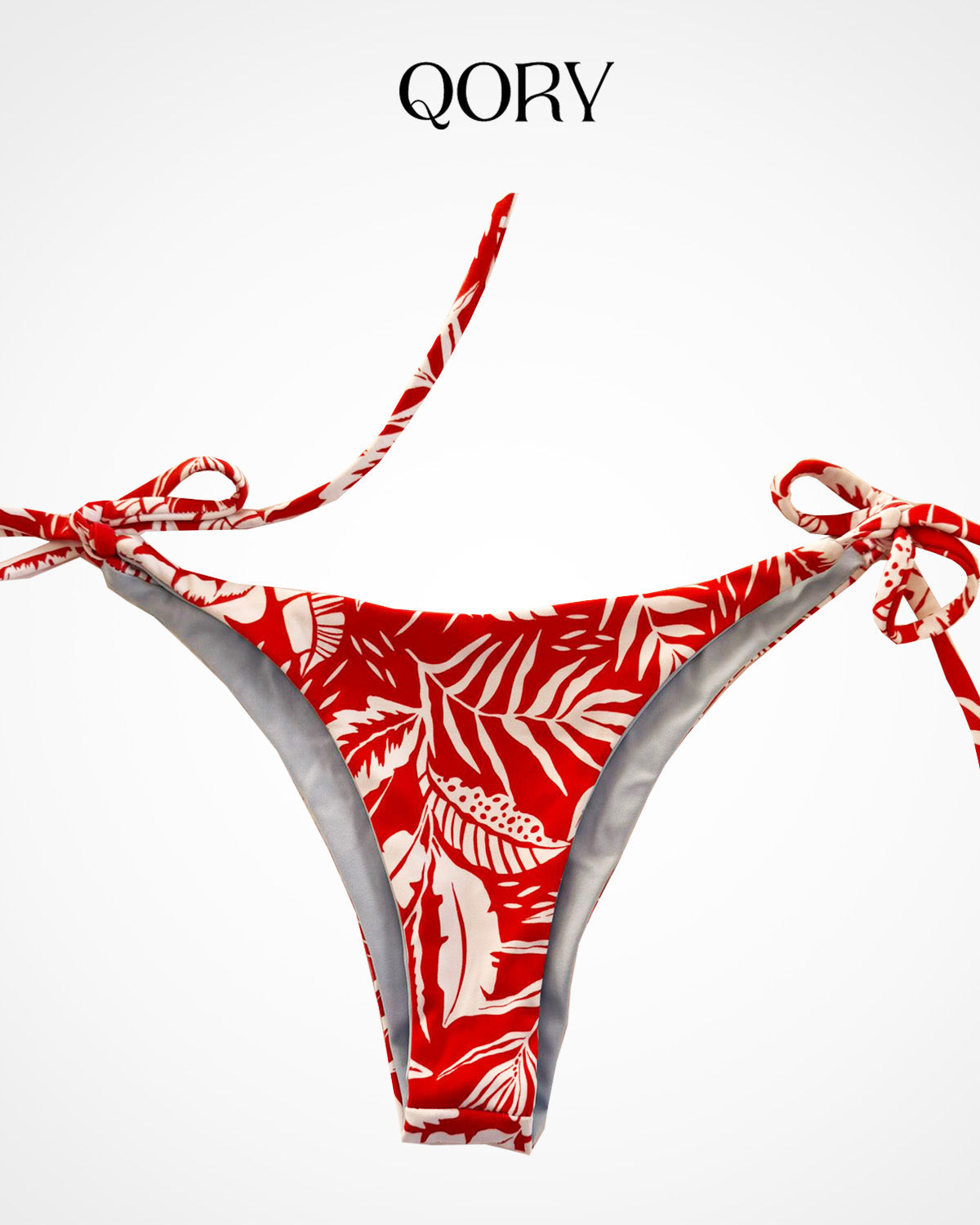 - Moderate coverageInner elastic-core tie straps for secure support and stretch